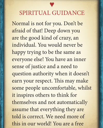Affirmation: I don’t mind times of confusion or distress because I know they indicate that I’m going through soul growth, and I trust the process. I don’t try to impose meaning on what I don’t yet understand. I don’t try to take action or understand prematurely. I’ll know when it’s time to act, and it’s okay for me to relax and trust that the clarity will come when the time is right.