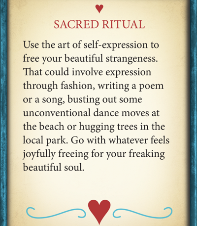 Affirmation: My soul is a creative fire that wants to break free from what has been and give life to something new. I choose to let go of my inhibitions, freely express myself, follow my heart, and embrace the new life that I’m craving.